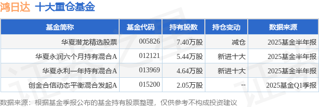 根据2025基金半年报公募基金重仓股数据,重仓该股的公募基金共3家,其中持有数量最多的公募基金为华夏基金的华夏潜龙精选股票。华夏潜龙精选股票目前规模为0.89亿元,最新净值2.3395(9月23日),较上一交易日下跌1.15%,近一年上涨26.77%。该公募基金现任基金经理为徐恒。徐恒在任的基金产品包括:华夏移动互联混合人民币,管理时间为2024年12月26日至今,期间收益率为8.18%;华夏成长先锋一年持有混合A,管理时间为2025年9月11日至今,期间收益率为5.47%。