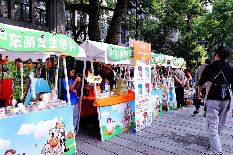 萌宠市集作为促消费核心载体,整合了EKA天物空间及沪东区域10余家优质商户,涵盖宠物用品、定制服务、健康护理、特色餐饮等多元品类,构建起“宠物消费全链条”服务生态。